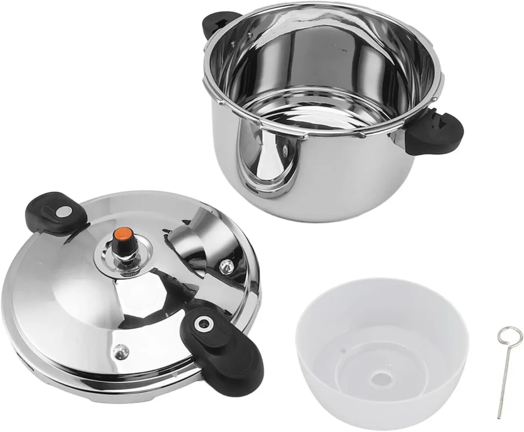 - Premium Stainless Steel Construction: Crafted from high-quality stainless steel, this pressure cooker is designed to resist high temperatures and withstand prolonged use.
