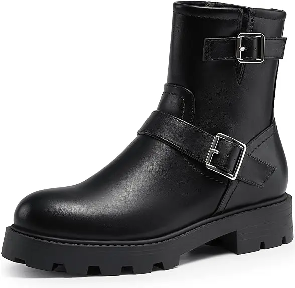 - ZIP-UP DESIGN: Buckle straps decoration,never out of trend. The combat boots with inner zipper functions for an easy on-and-off wear and adds decoration to the boot, adjustable buckle allow a flexible fit.